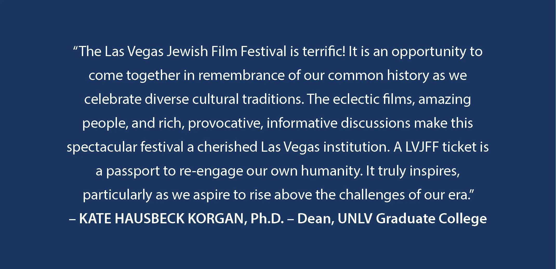 The mission of the Las Vegas Jewish Film Festival is to provide inclusive educational and cultural outreach to the entire Jewish Las Vegas community and non-Jewish community through the lens of Jewish content cinema with a focus on identity, history and culture; promoting solidarity with Israel and remembrance of the Holocaust.